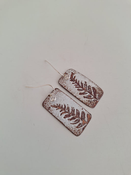 Copper Fern earrings – Enamel Pendant – One of a Kind Botanical Jewelry