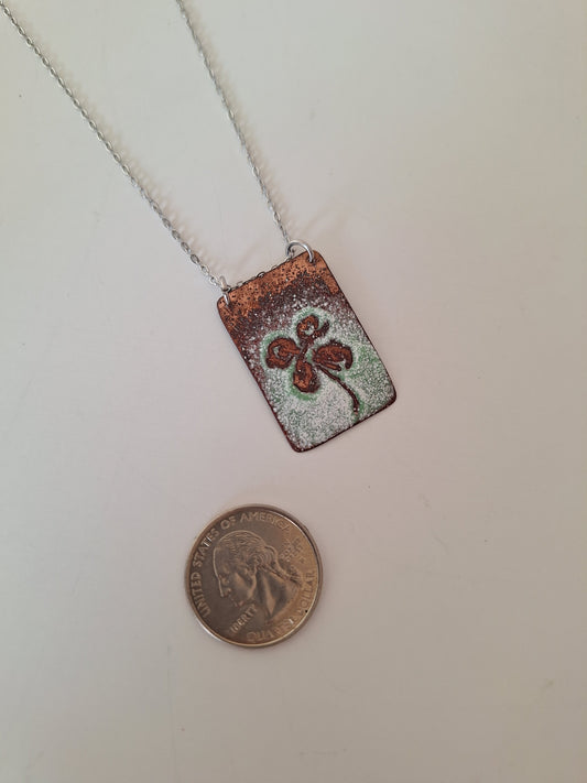 Copper Clover Necklace – Enamel Pendant – One of a Kind Botanical Jewelry