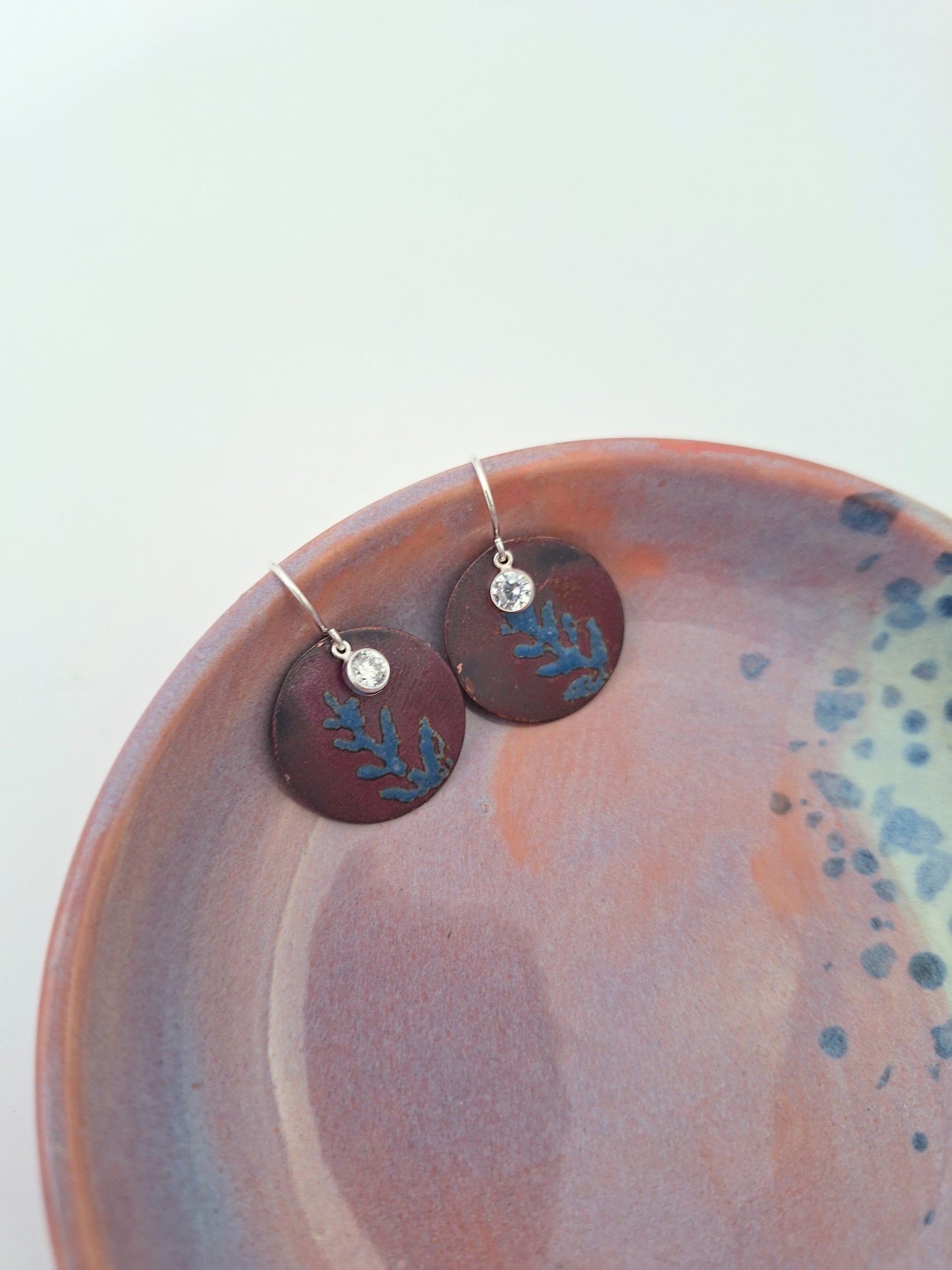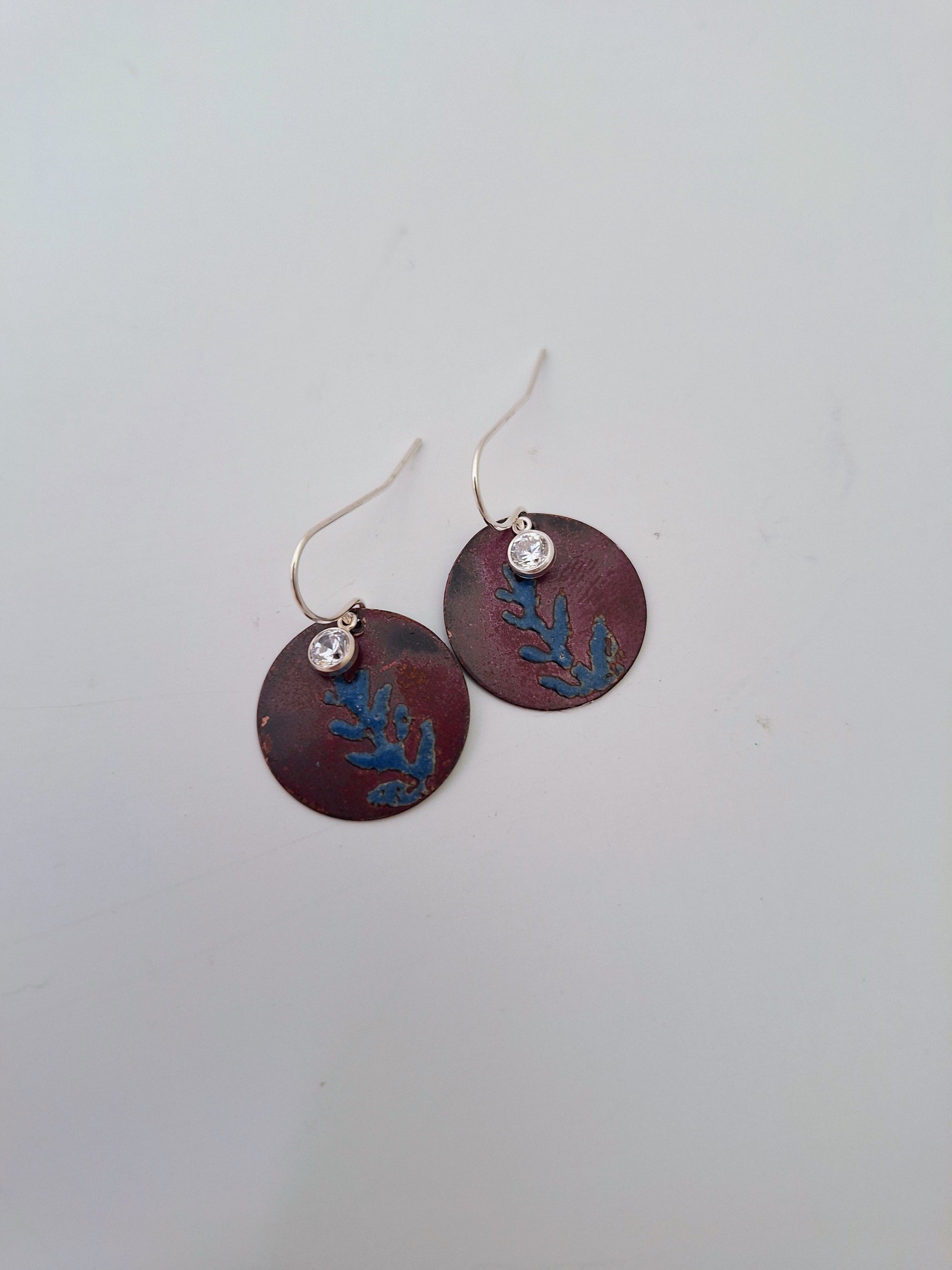 These earrings are a must-have accessory. One of a kind patinaed copper with sterling accents and sterling earwires.