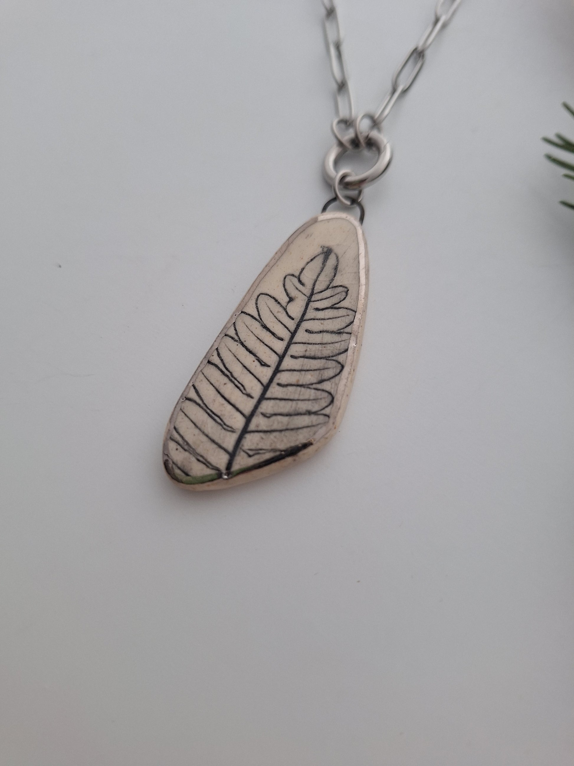 This Ceramic Necklace features a unique handmade pendant made from pressed wildflowers and 18k white gold accents.
