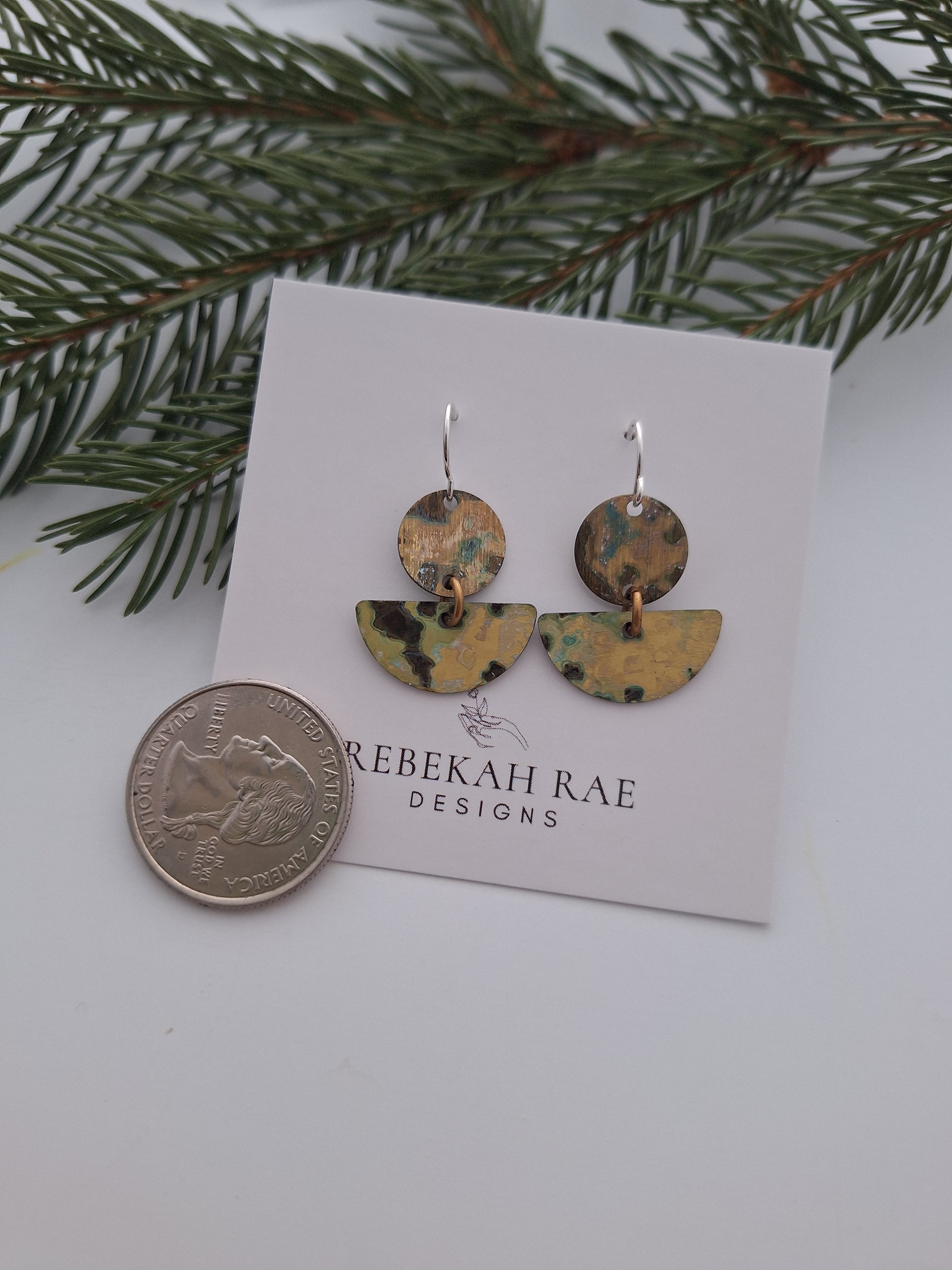 These earrings are a must-have accessory. One of a kind patinaed brass with sterling earwires.