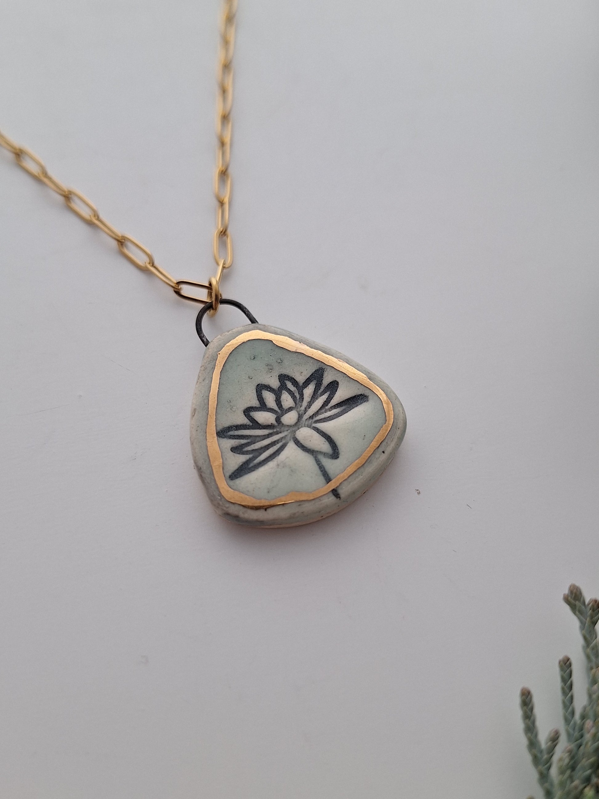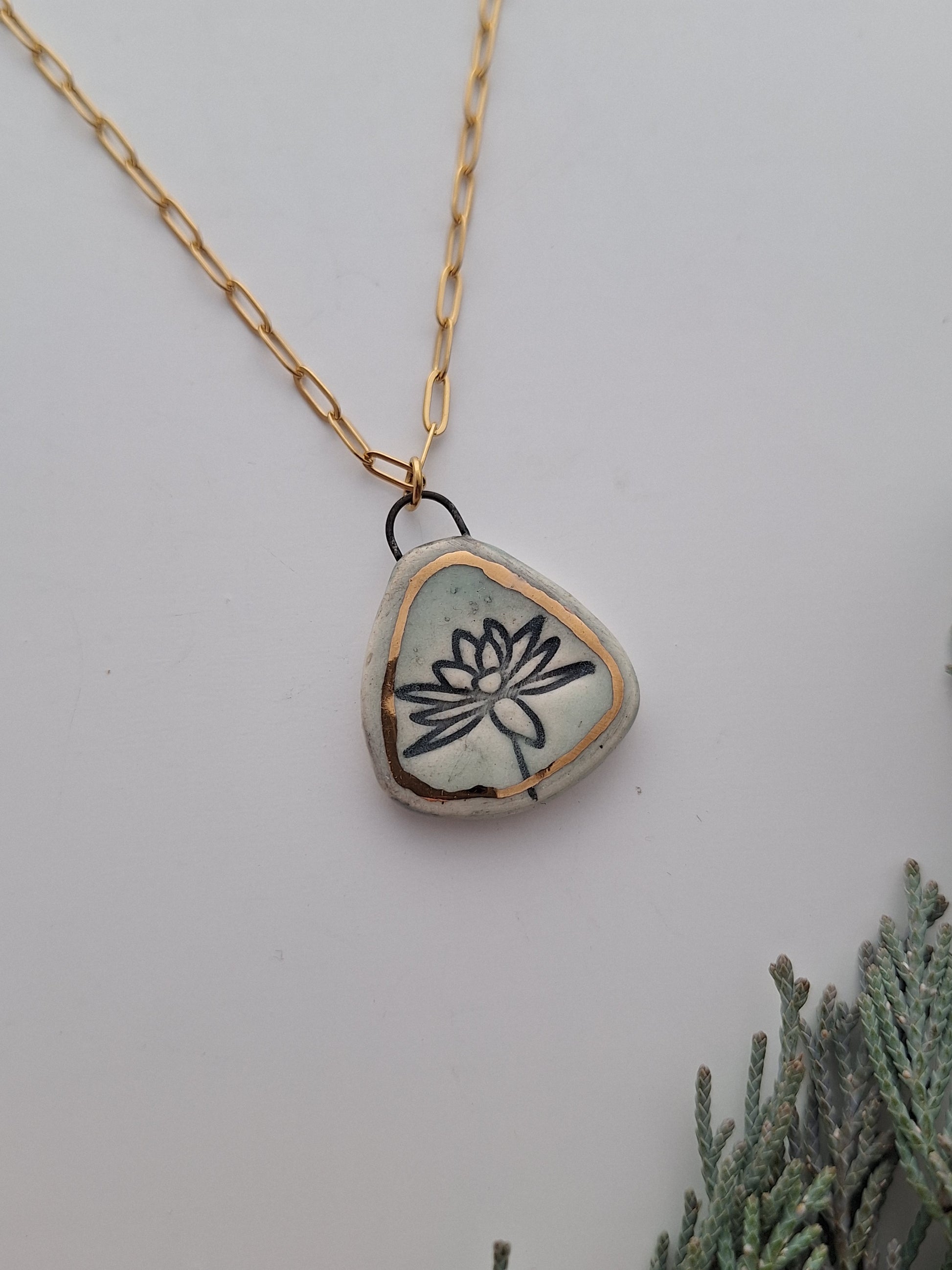 Gold Lily Ceramic Necklace