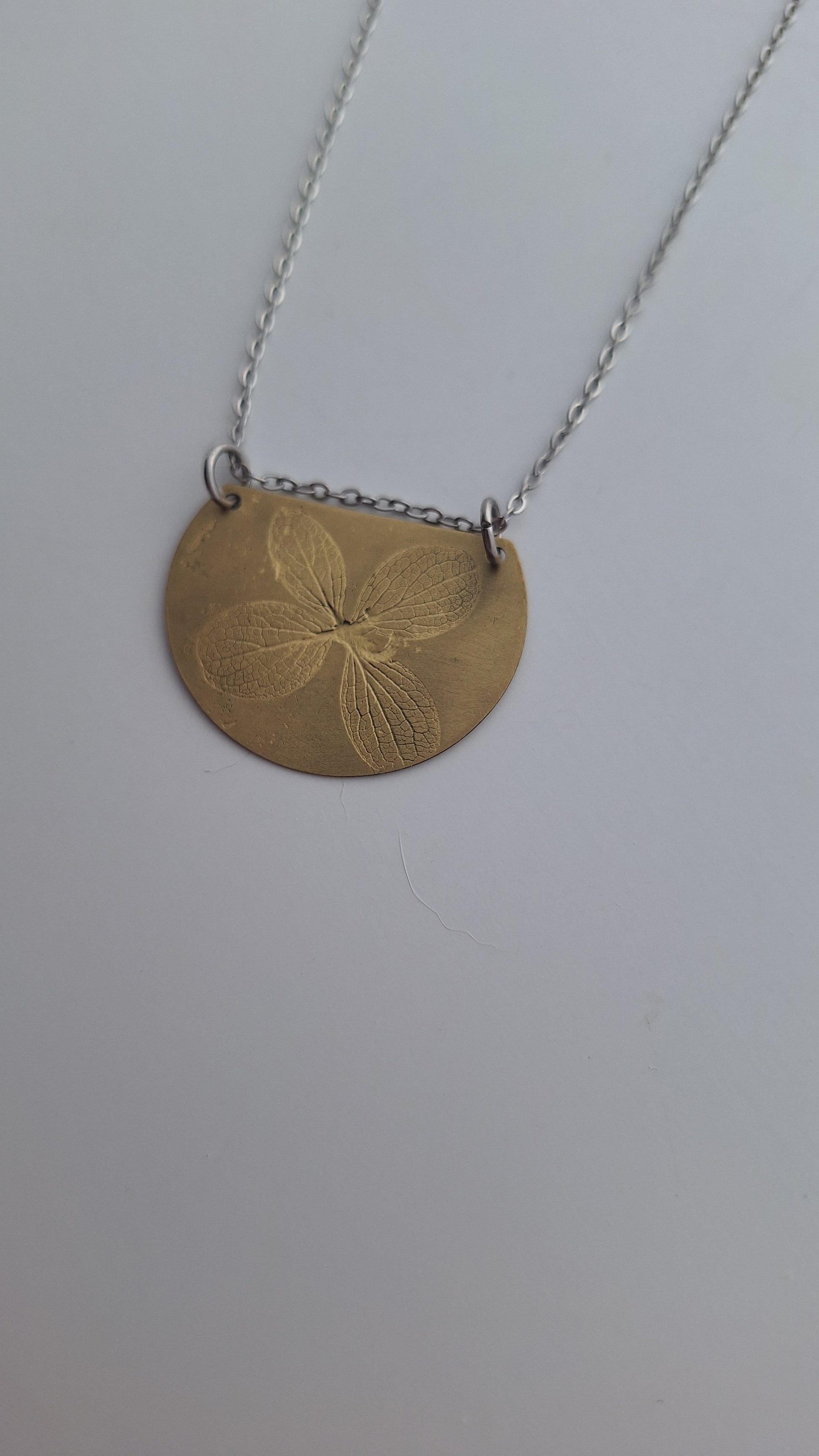 Pressed Hydrangea Brass Necklace — Botanical Imprint (One of a Kind)