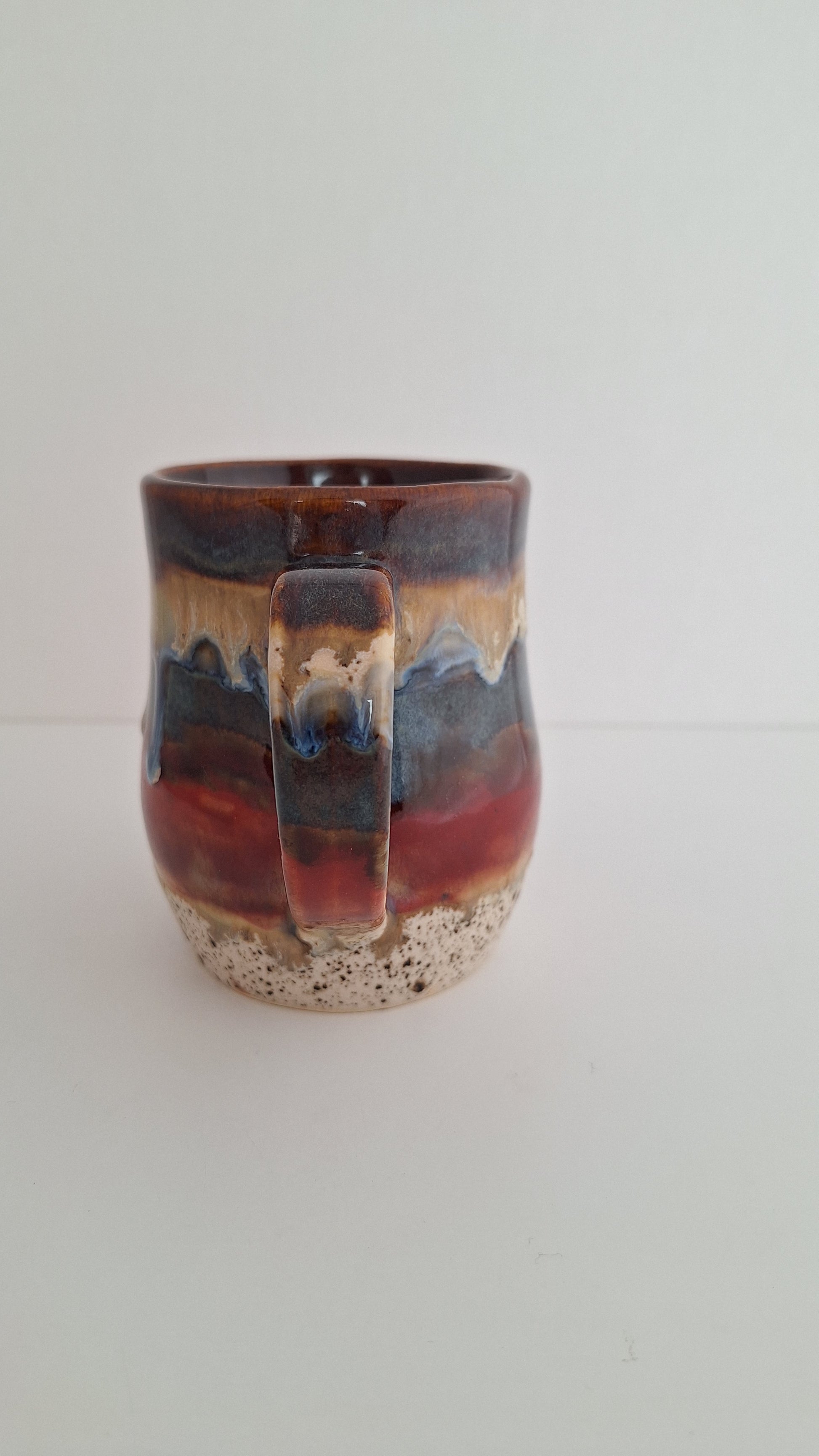 Introducing the Vista Mug - a one of a kind handcrafted mug. It boasts an array of earthy colors, making it a unique addition to your kitchen. Start your day with a one-of-a-kind experience and bring a touch of nature to your morning routine.