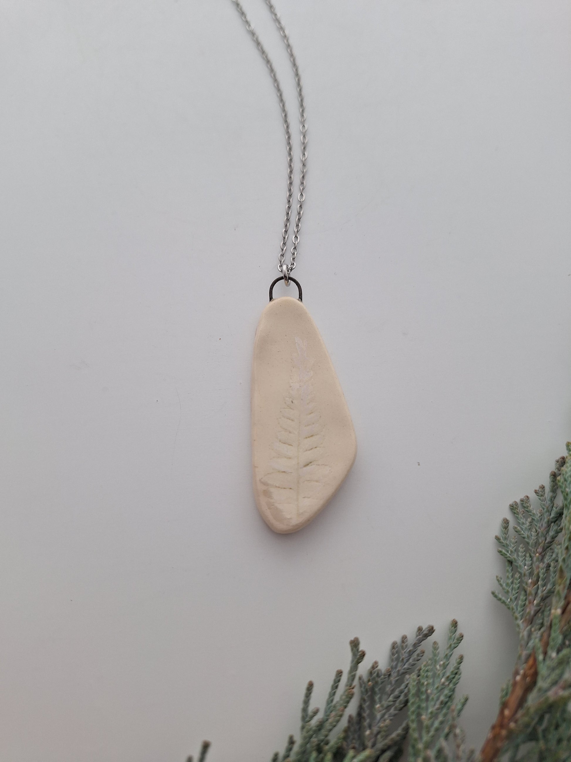This Ceramic Necklace features a unique handmade pendant made from pressed wildflowers.