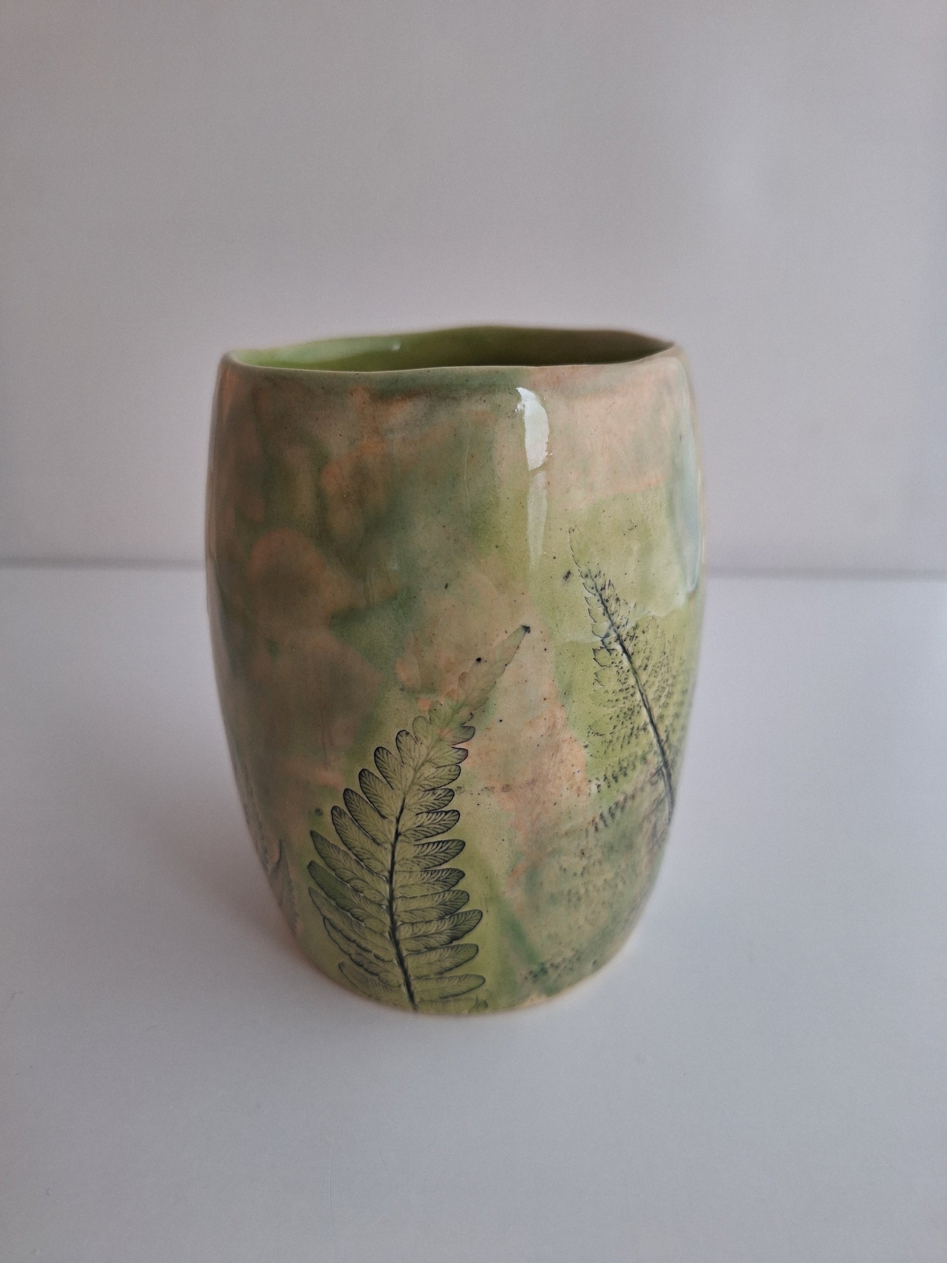 This mug is a handcrafted piece of art that features real ferns pressed into its design. Enjoy your morning coffee in a one-of-a-kind mug.